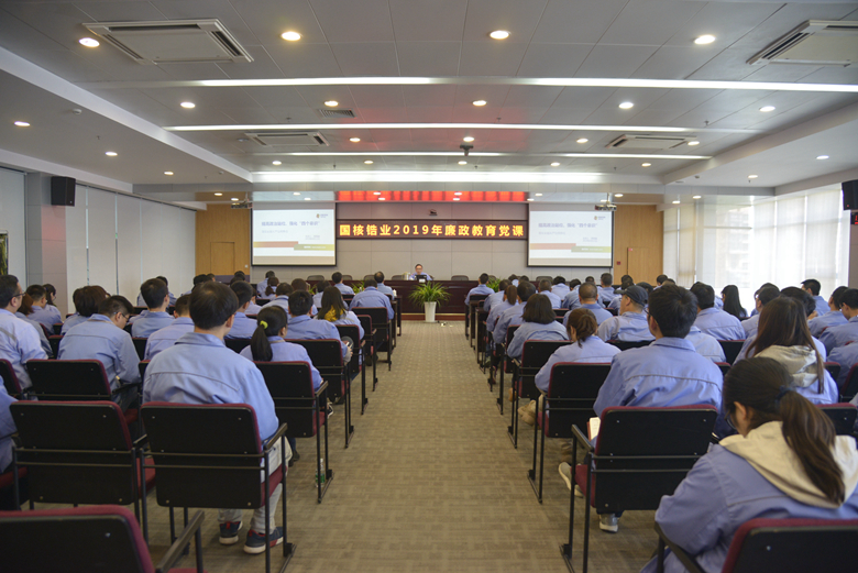 2019年4月11日,根據(jù)集團(tuán)公司統(tǒng)一部署和公司“黨紀(jì)黨規(guī)宣傳教育月”活動的安排,國核鋯業(yè)開展2019年廉政教育黨課,公司領(lǐng)導(dǎo)班子、中層干部、全體黨員120余人參加了黨課。