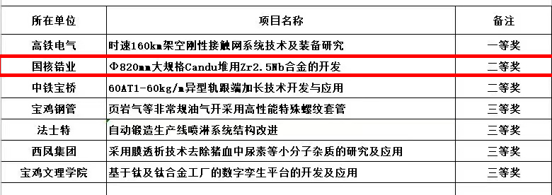 7月15日,由團市委、市人社局、市科技局、人行寶雞中心支行聯合主辦的“長安銀行杯”寶雞市第六屆青年創新創效大賽決賽在寶雞市少年宮舉行。國核鋯業團委選送的《Ф820mm大規格Candu堆用Zr2.5Nb合金的開發》項目在全市96個項目中榮獲二等獎。