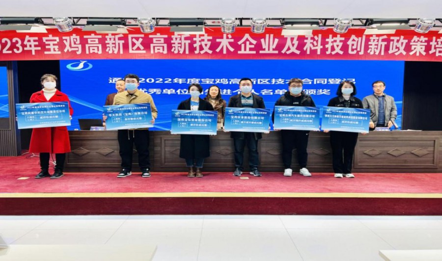 3月20日,2023年寶雞高新區(qū)高新技術(shù)企業(yè)及科技創(chuàng)新政策培訓(xùn)會順利召開,公司獲“2022年度技術(shù)合同認(rèn)定登記工作優(yōu)秀單位及先進(jìn)個(gè)人”獎(jiǎng)勵(lì),這是公司開展技術(shù)合同認(rèn)定工作后第三次榮獲此獎(jiǎng)勵(lì)。