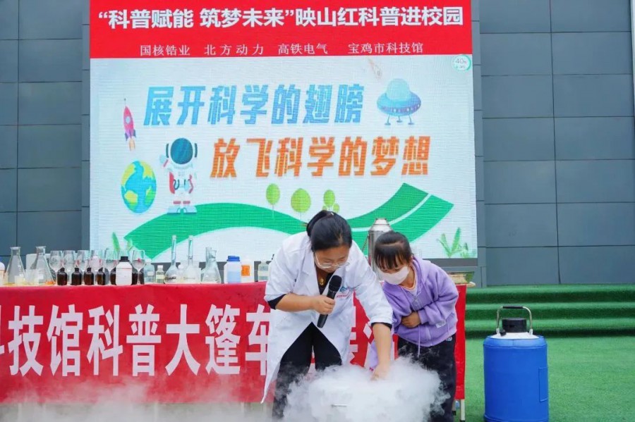 在“六一”國際兒童節、陜西省科技活動周來臨之際,國核鋯業團委聯合北方動力、高鐵電氣、寶雞市科技館等多家企事業單位開展了以“科普賦能 筑夢未來”為主題的“映山紅科普進校園活動。進一步推動秦嶺貧困地區學生的科普教育,提高青少年學生科學素養,以“映山紅”筑夢秦嶺,愛滿陳倉。